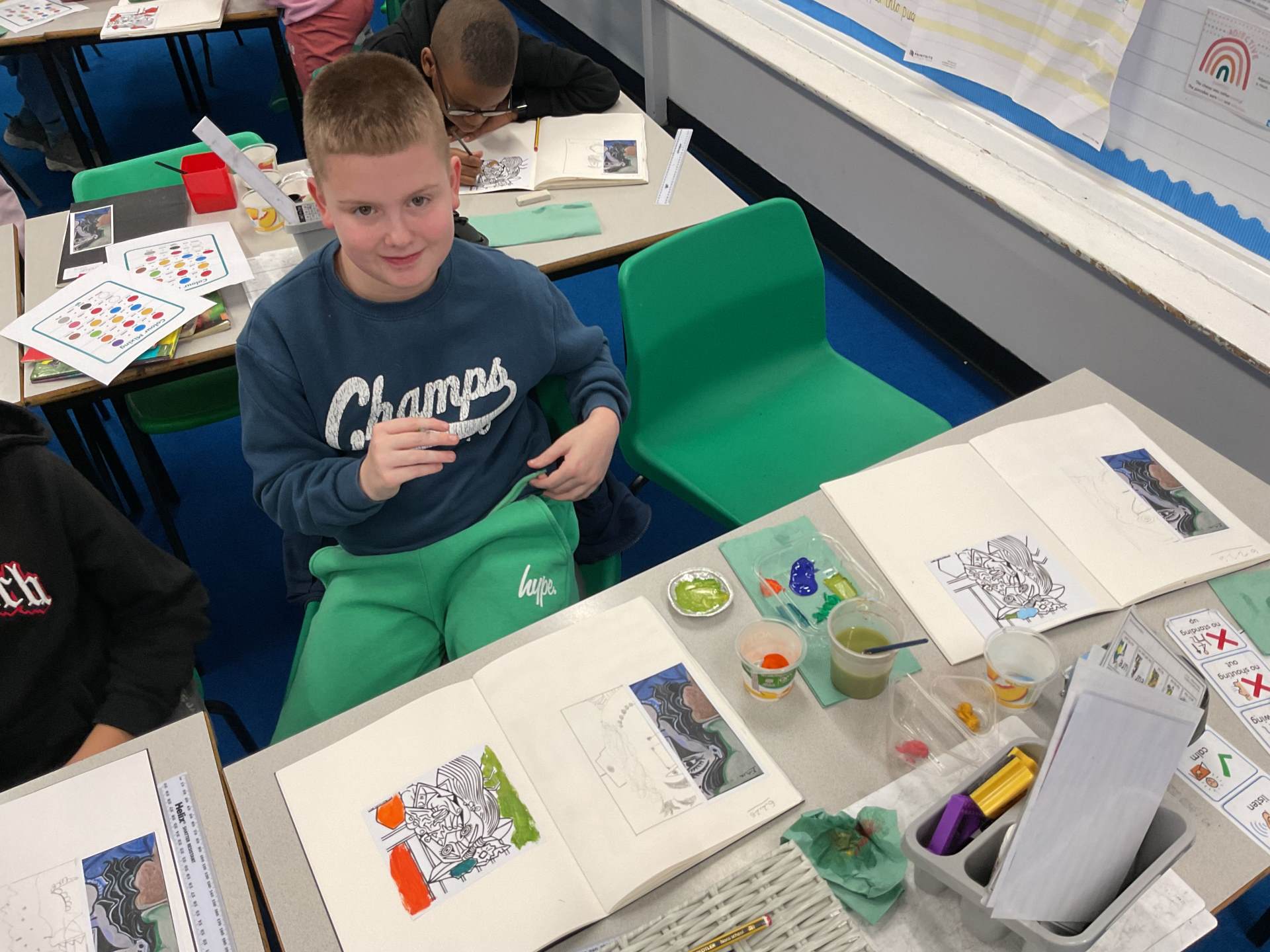 This half term Orange Class have been exploring the work of Pablo Picasso. We have mixed colours, created a colour palette and looked at his style of cubism