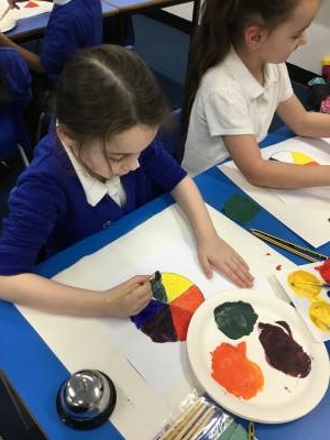 The children in blue class have been learning all about the artist Paul Klee. They looked at his painting Seneccio and talked about the use of shape and colour. The children then explored warm and cool colours, adding black and white to create shades and tints.